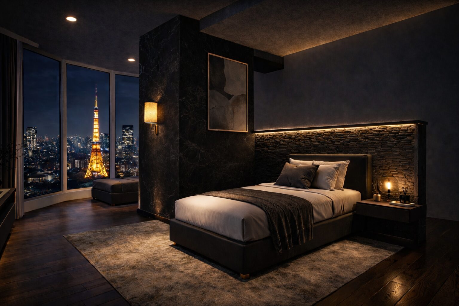 私たちが目指したのは、高層階という非日常のロケーションに、五感を研ぎ澄ます「静かな居場所」を設えることでした。