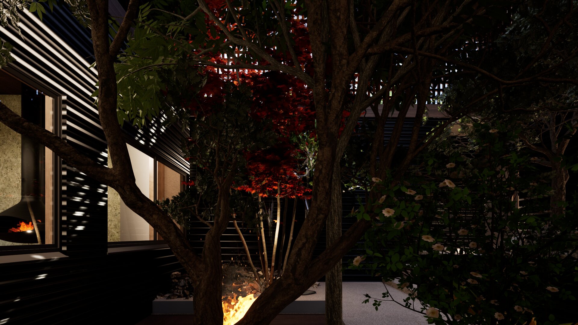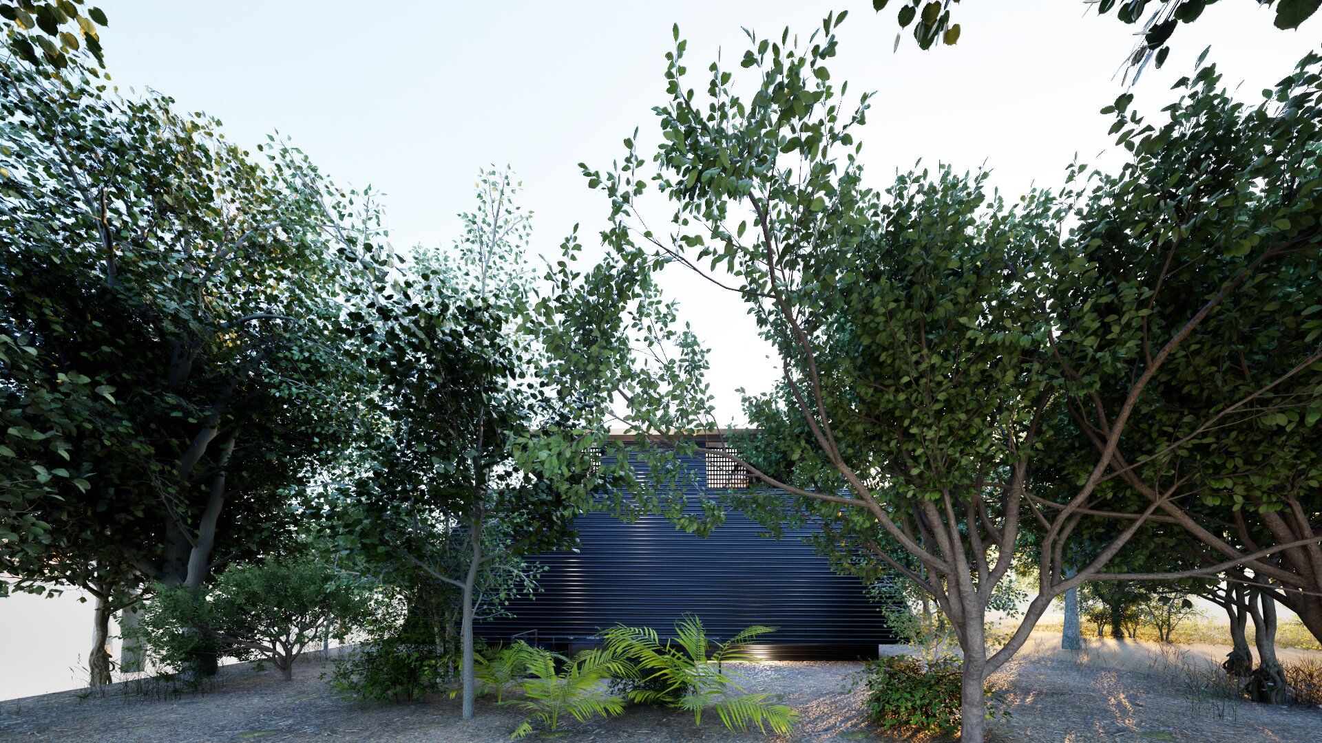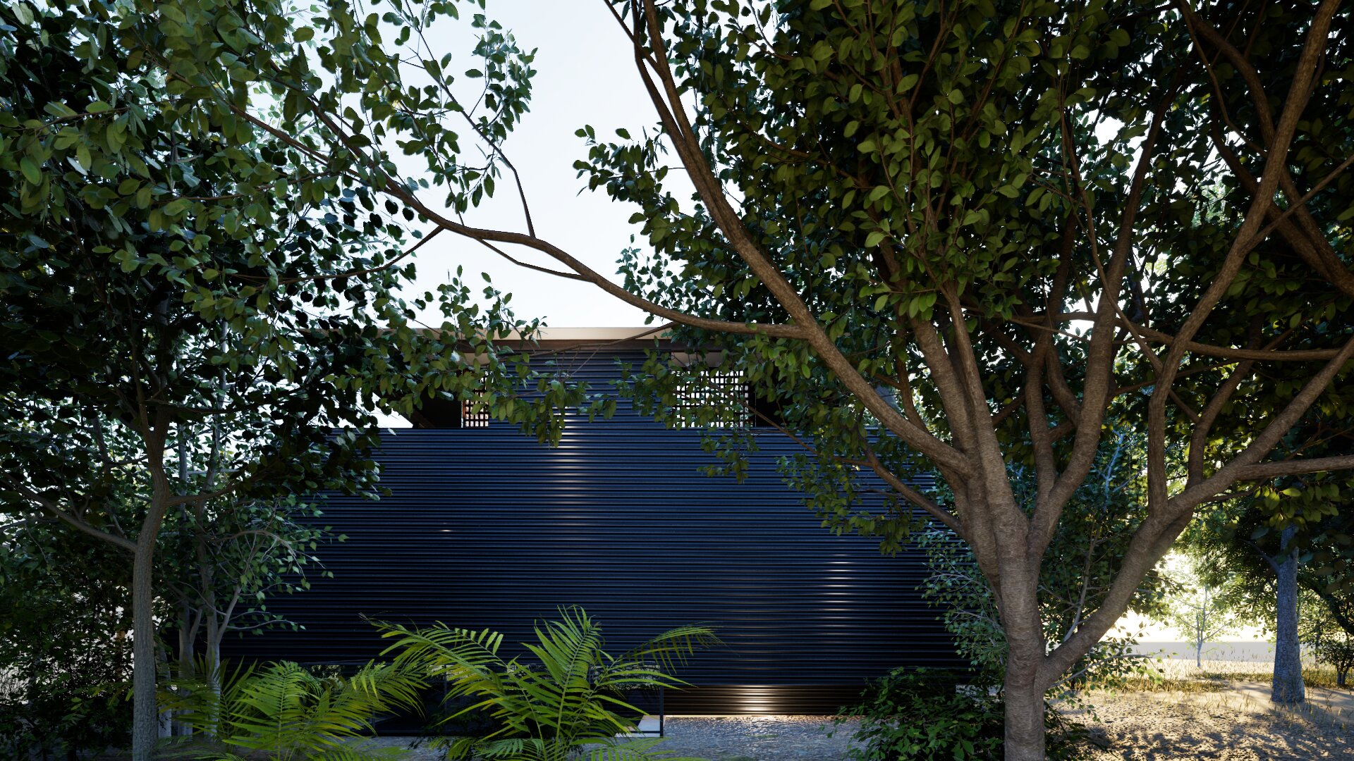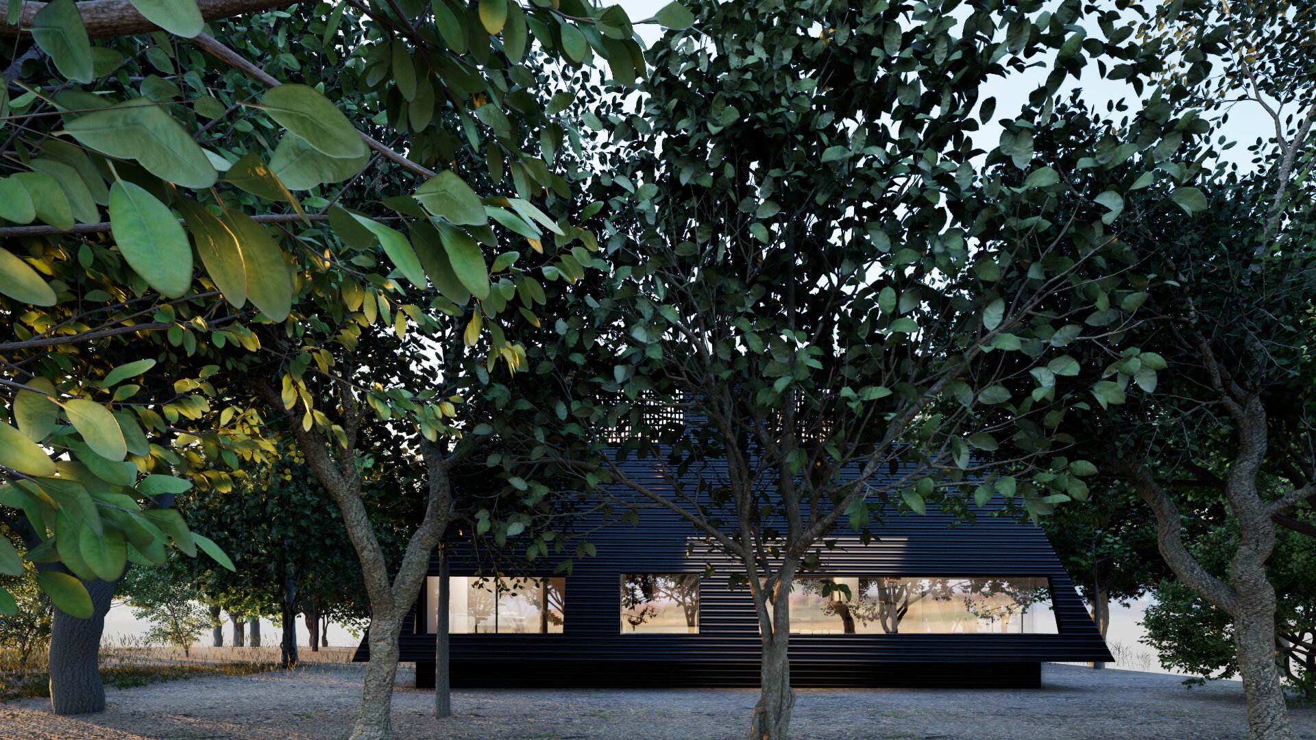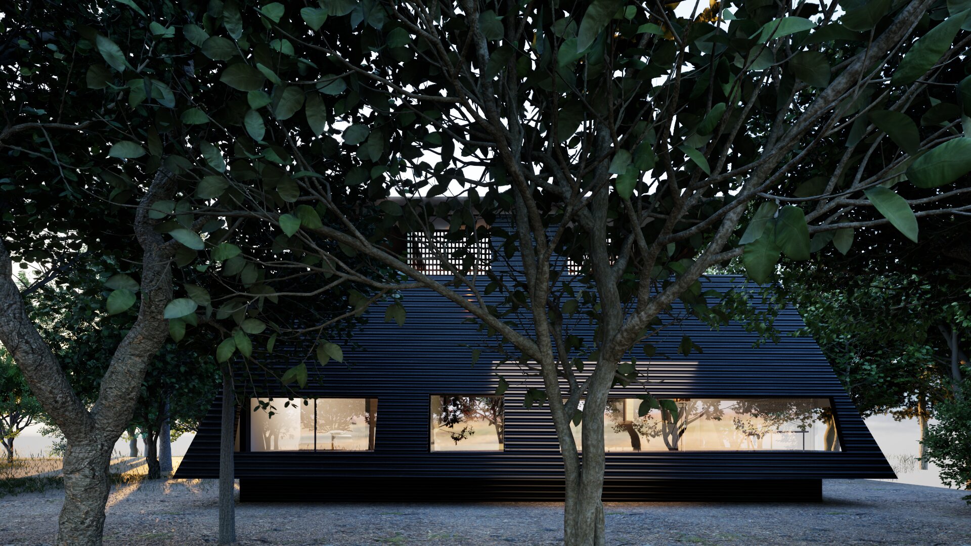 This area is a vacation home district, so the design carefully considers building placement and the height of openings.